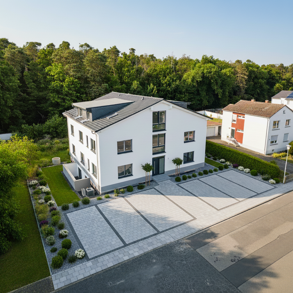 Mit der Sonnenblick Residenz entstand in der Sudetenstraße 11, 64859 Eppertshausen, ein hochwertiges Mehrfamilienhaus mit fünf Wohneinheiten und moderner Architektur.